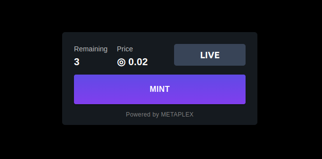 Perfecto, ahora puede empezar a acuñar sus NFT. Pero, ¿cómo? Probablemente desees construir un sitio web para permitir la acuñación de NFT. Afortunadamente, el código base de Metaplex nos tiene cubiertos.